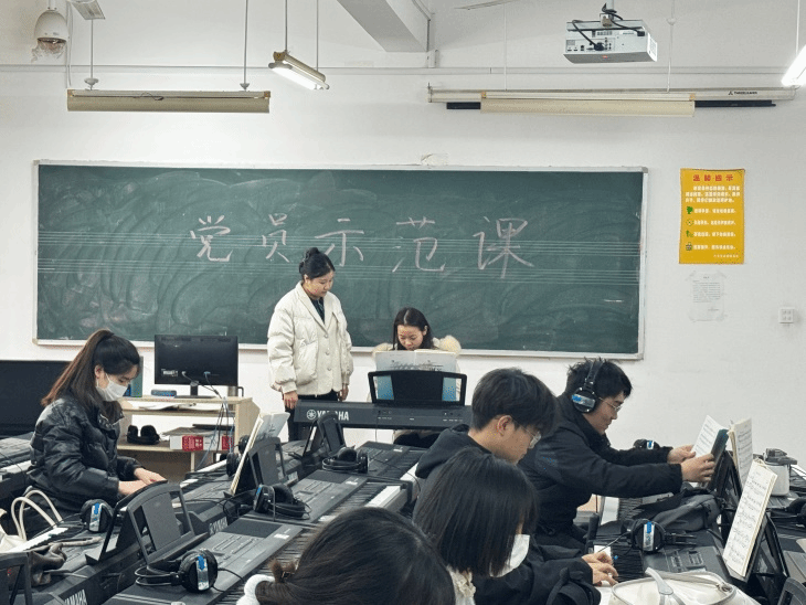 本次示范课聚焦专业核心课程《钢琴集体课》,由党员教师孔祥娅主讲。孔祥娅老师将课程思政元素融入经典曲目解析,通过“奋斗精神”主题导入,结合学生现场演奏点评,展现扎实的教学功底与课程思政融合能力,现场学习氛围浓厚。此次示范课旨在通过“亮身份、展风采、促提升”,带动更多教师深耕课堂、创新教学,为学院高质量发展注入党员先锋力量。