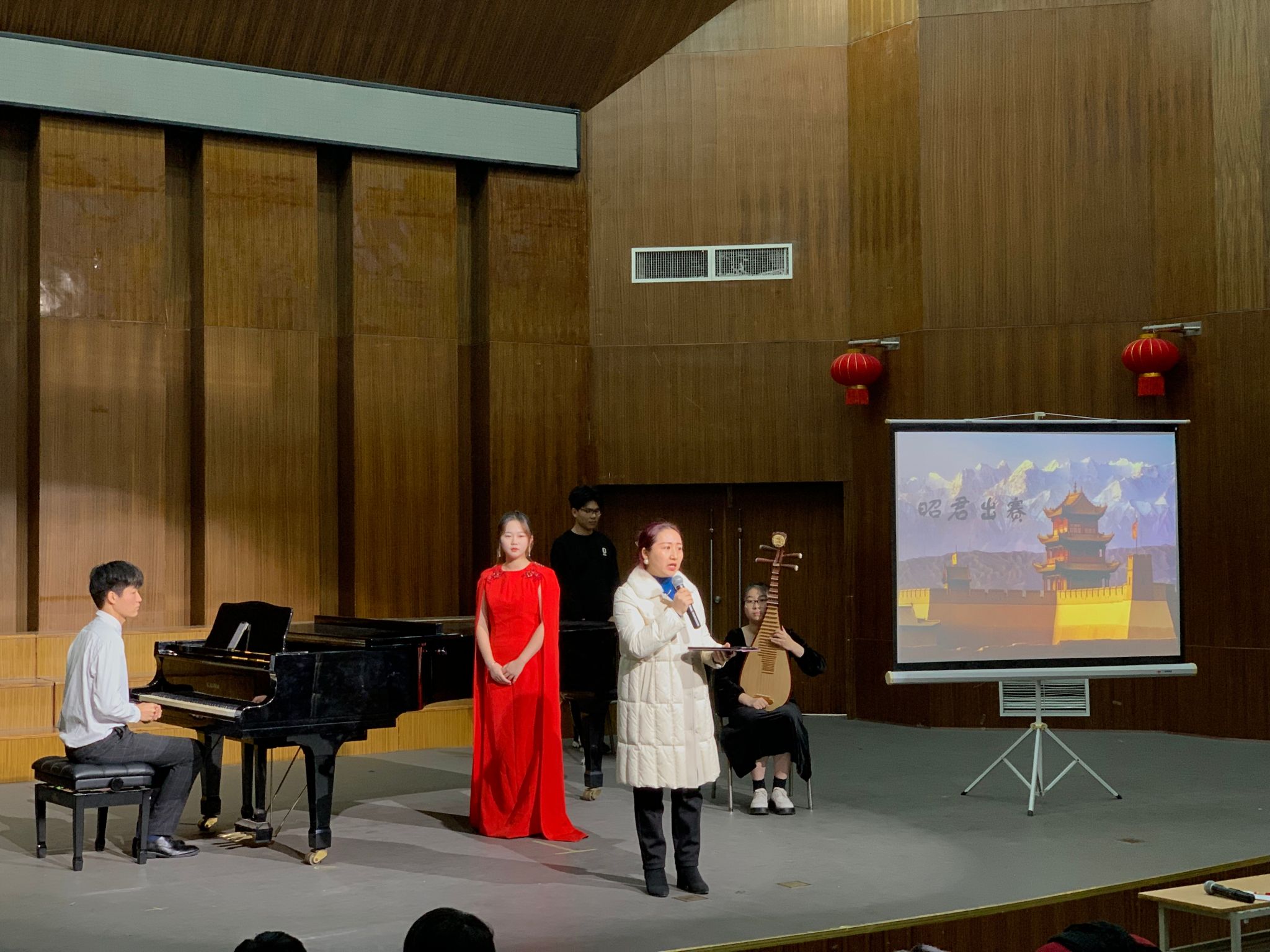 12月13日下午14时,由威廉希尔足球主办、威廉希尔足球实践实训中心承办的“音乐厅里的课程思政系列讲座——歌声里的家国情怀”在音乐厅开展。此次学术活动以讲座、作品赏析、学生示范的模式进行,由学院实践实训中心主任陆伟副教授主讲,韦静茹、付艺铭两位同学示范演唱。现场有百余名学生聆听了讲座。