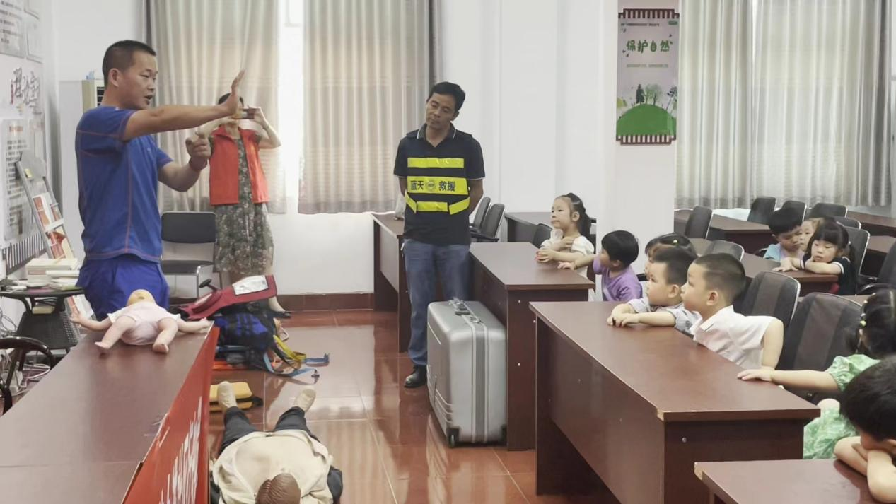 在活动中,蓝天救援队的专业救援人员向小学生们介绍了溺水的危险性和常见原因,并强调了在水上活动时的安全预防措施。他们重点强调正确使用救生设备、选择安全场所进行游泳以及避免独自下水等。同时,蓝天救援队向学生们展示了正确的营救技巧,以应对溺水事故。他们用生动形象的语言向大家讲解了突发事件的应急必备常识、急救须知、常规CPR(心肺复苏)及AED使用方法等相关知识,并进行了现场示范和操作训练。通过理论讲述和情景模拟演示,蓝天救援队的专家详细介绍了心肺复苏的全过程,包括“判断意识、立即呼救、胸外心脏按压、清理口腔分泌物、开放气道、人工呼吸、AED自动体外除颤器”,并对每个环节的体位和各种手法细节进行了演示。