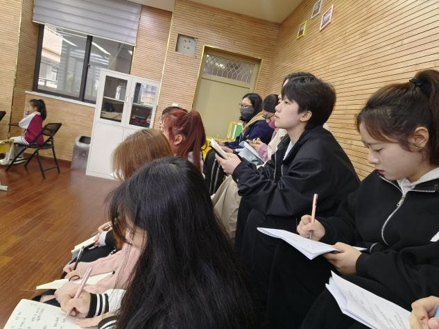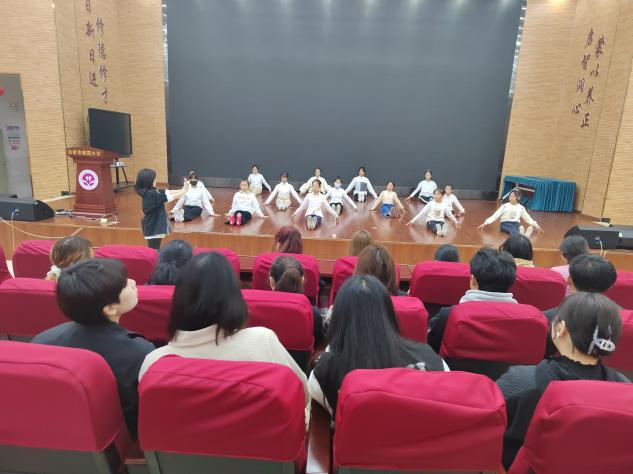 最后一节见习课,同学们观摩了舞蹈社团的排练。整个排练过程有条不紊,从热身到舞蹈细节的纠正,让大家看到了舞蹈老师的专业素养。