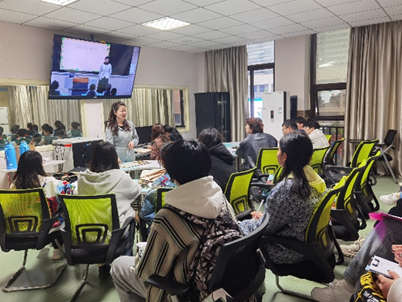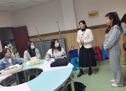 下午两点五十分,见面会进行,翡翠学校教学部主任王贵红老师热情欢迎威廉希尔williamhill学子来进行教育见习。同学们首先观摩了音乐组组长曹珍珍老师为三年级九班的同学们上音乐课《柳树姑娘》。曹珍珍老师精心设计教学环节,教学极富有趣味性与层次性。课后,曹珍珍老师还毫无保留地与见习的同学交流分享自己的教学经验。