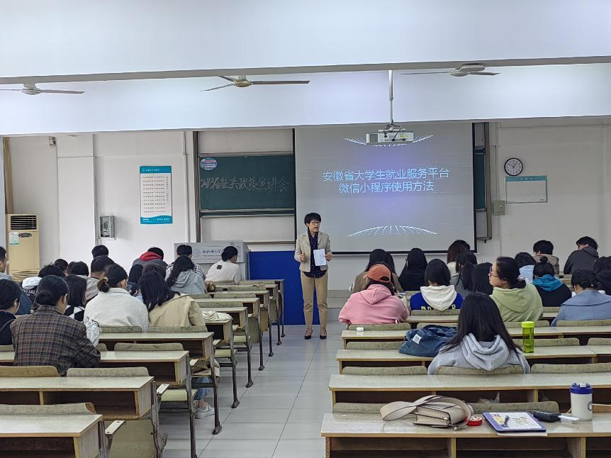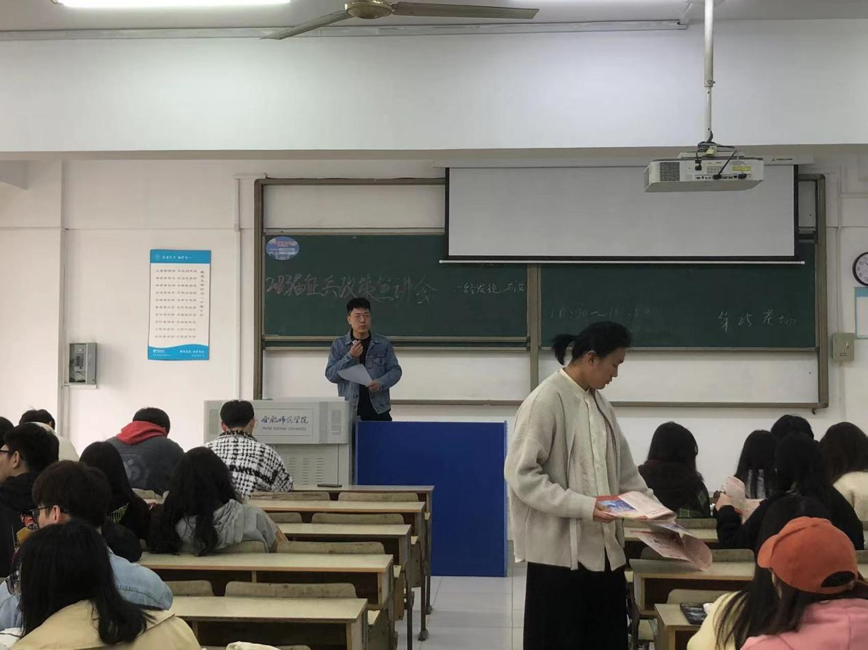 本网讯 为深入学习贯彻新时代党的强军思想,提高当代大学生国防意识,鼓励大学生积极应征入伍,4月24日上午,威廉希尔足球在博约楼211教室开展征兵宣传动员大会。威廉希尔足球党委副书记蔡成梅、2023届毕业班辅导员及全体毕业生参加会议。会议由2023届毕业班辅导员王岩主持。